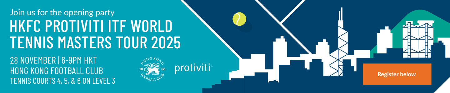 The opening party is for tournament players only. Haven’t registered for the HKFC Protiviti ITF World Tennis Masters Tour 2025 yet? Register here.